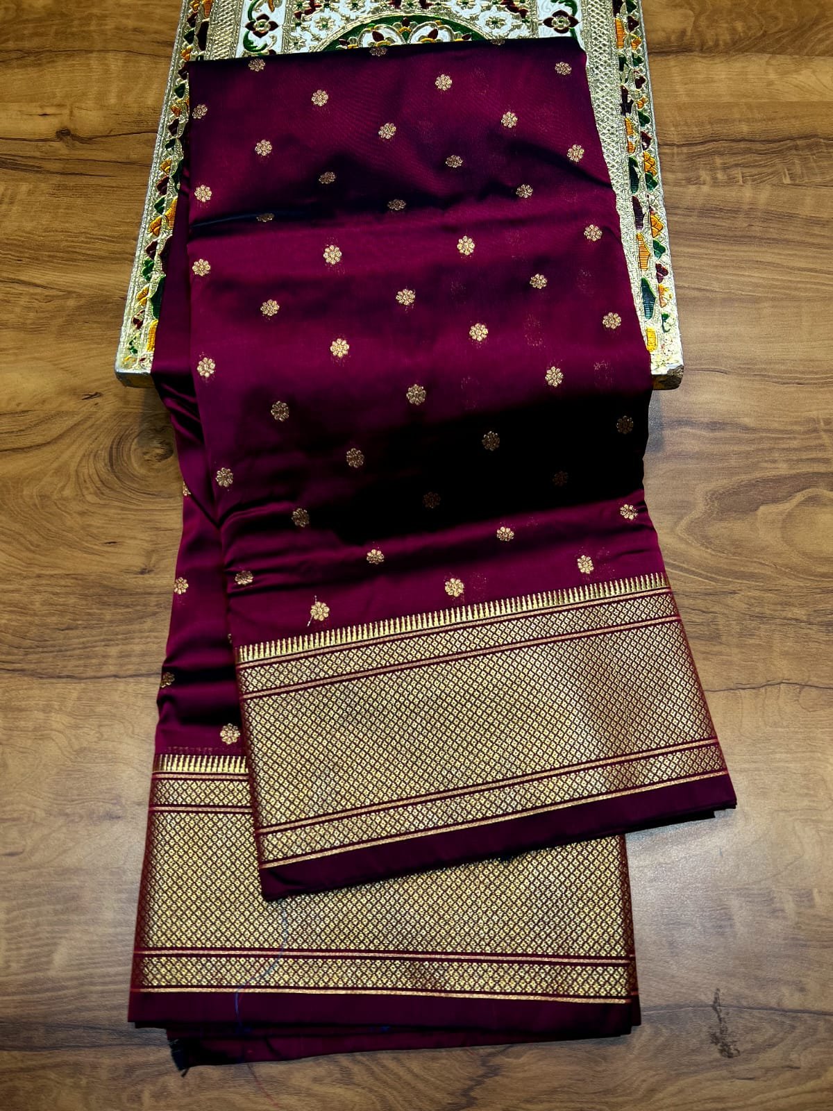 3. Traditional copper zari weaving for a premium finish
