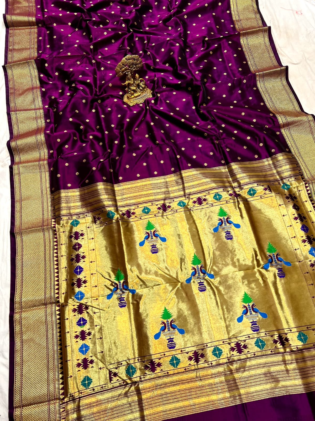 • Pallu Style: Grand Maharani weaving pallu for a royal Paithani finish